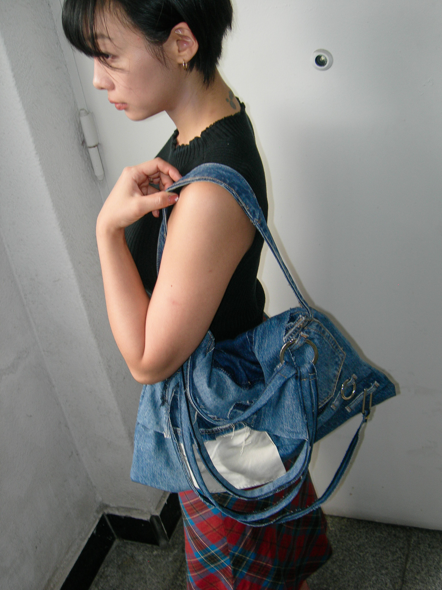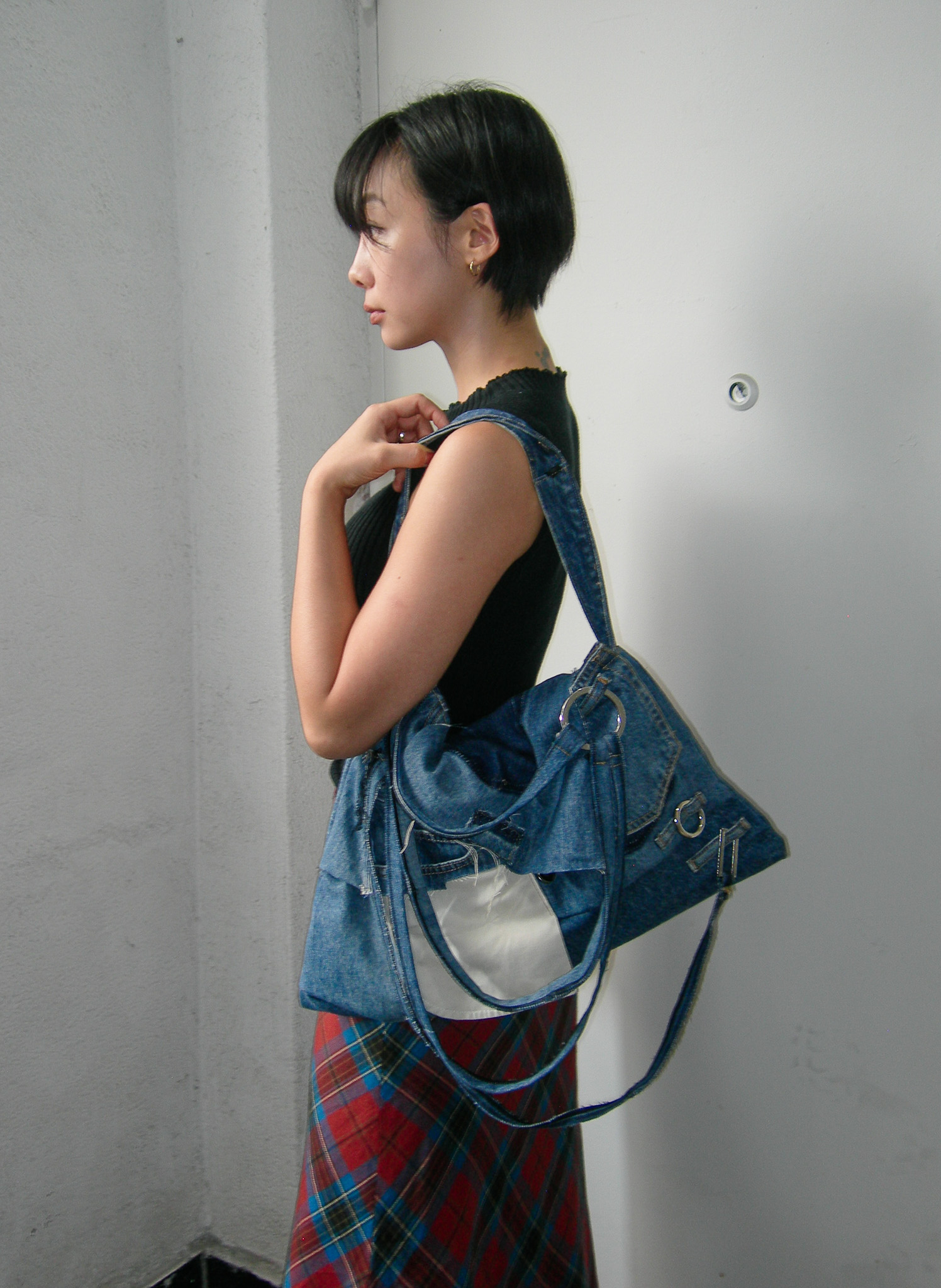 데님 특유의 빈티지함과 사풀사풀하게 날리는 실오라기의 매력을 살린 가방입니다.