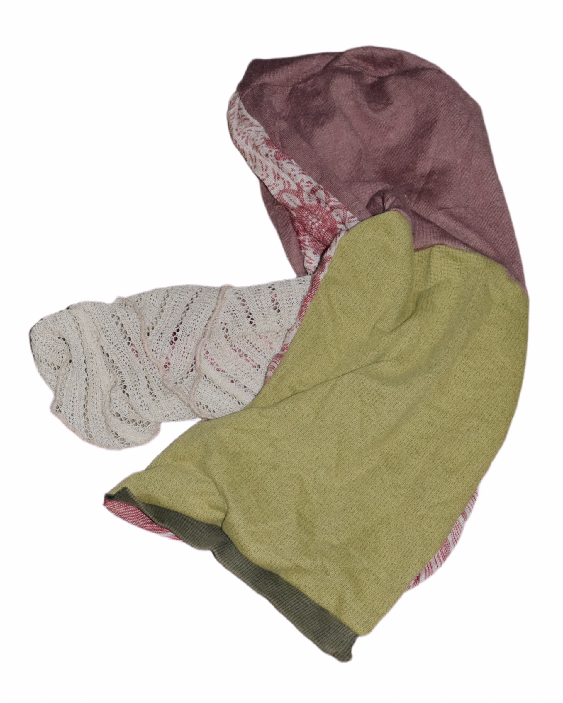 헌옷, 자투리원단 등을 가져와 후드 머플러를 만듭니다.